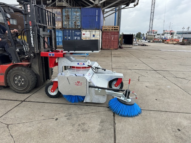 De Sweep HSTV 600 / 175 P is een ideale hydraulische veegmachine voor gebruik met een heftruck of ander machine voorzien van palletvorken. Deze machine vereis één dubbelwerkende hydraulische functie en is uitgerust met drie wielen voor optimale bodemvolging. De belangrijkste kenmerken van deze machine zijn: